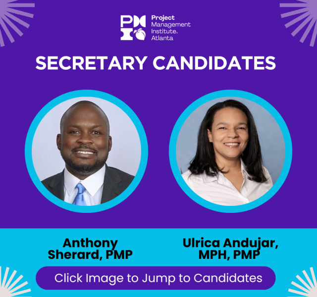 The PMI Atlanta Chapter Nominations Committee is proud to present the following candidates to the membership. Each PMI Atlanta Chapter member will receive an email with a unique link to cast your vote.
