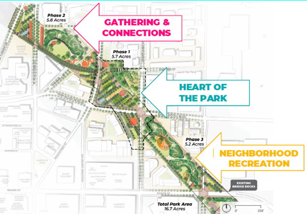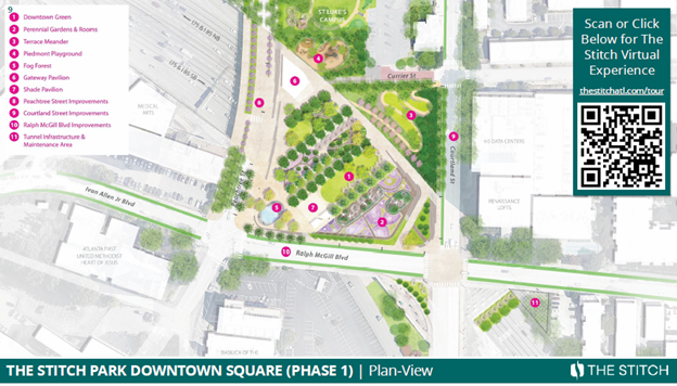 As you can imagine, the stakeholders and involved parties are many and varied, totaling 6000+ engaged individuals: the local residential community, Stitch, Inc., ADID (Atlanta Downtown Improvement District), CAP (Central Atlanta Progress), GDOT, NEPA (National Environmental Policy Act), a new SSD (Special Services District), engineers, architects, designers, governmental entities, investors, and a myriad of other business and personal interests.
