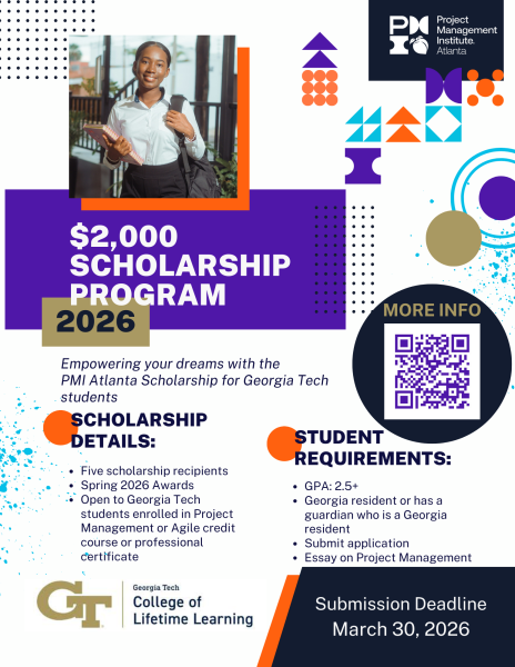 The Atlanta Chapter of The Project Management Institute (PMIAtlanta.org), the world’s leading professional membership organization for project managers, announced today that it will be offering five $2,000 scholarship awards for essays to engineering, computing & business students enrolled with our university partner, The Georgia Institute of Technology. The essay topic is focused on project management as a value-delivery system.
